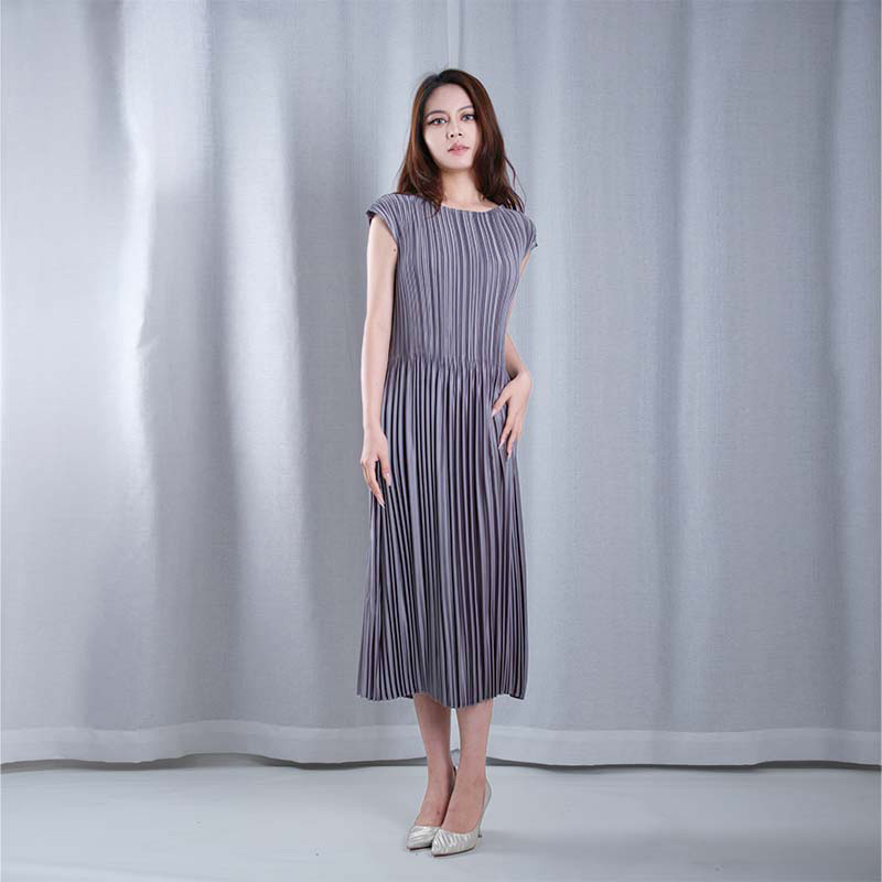 solid color boat Neck sleeveless A-line hem midi dresses casual wear in grey