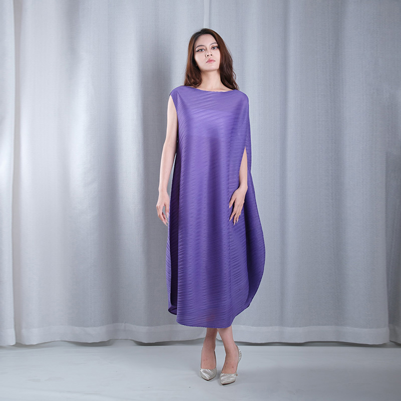 solid color pleated boat Neck sleeveless asymmetrical hemline loose maxi dresses for party plus sizes in purple