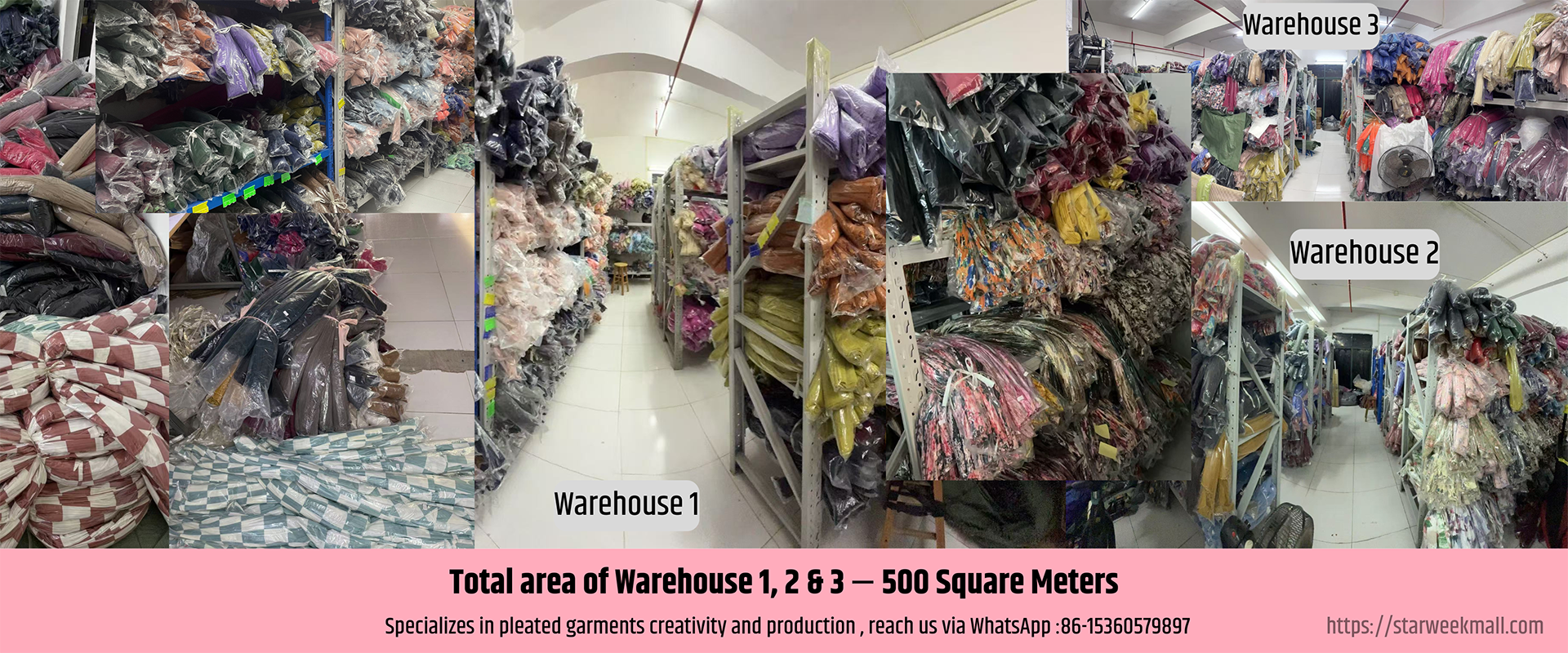 Own in-house facilities (workshop, warehouse, sample room) and end-to-end production capabilities, including cutting, pattern making, printing, machine pleating, handmade pleating, and finished product assembly.